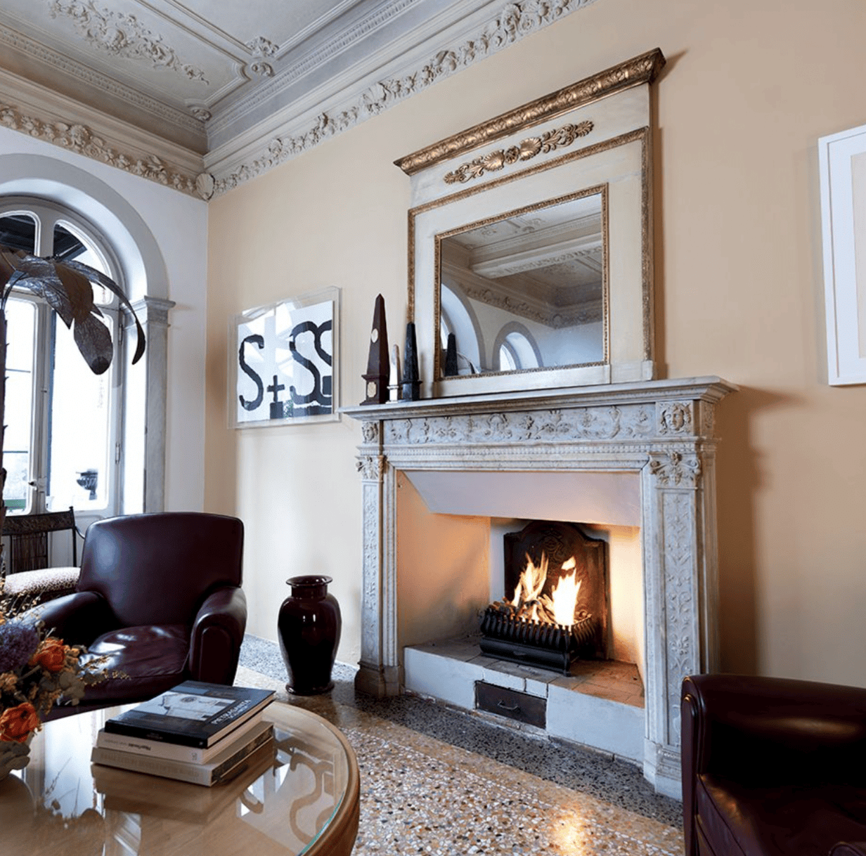 Le venti camere e suite di Palazzo Barsanti Bonetti, tutte diverse tra loro, si affacciano su un giardino interno di palme secolari, spazio raccolto e silenzioso che segna il ritmo delle giornate. La colazione preparata nella veranda, la luce che attraversa i salotti, il tempo sospeso del giardino: momenti in cui la presenza delle opere si intreccia naturalmente con l’esperienza dell’ospitalità.